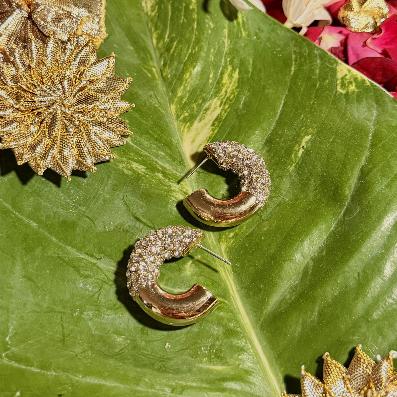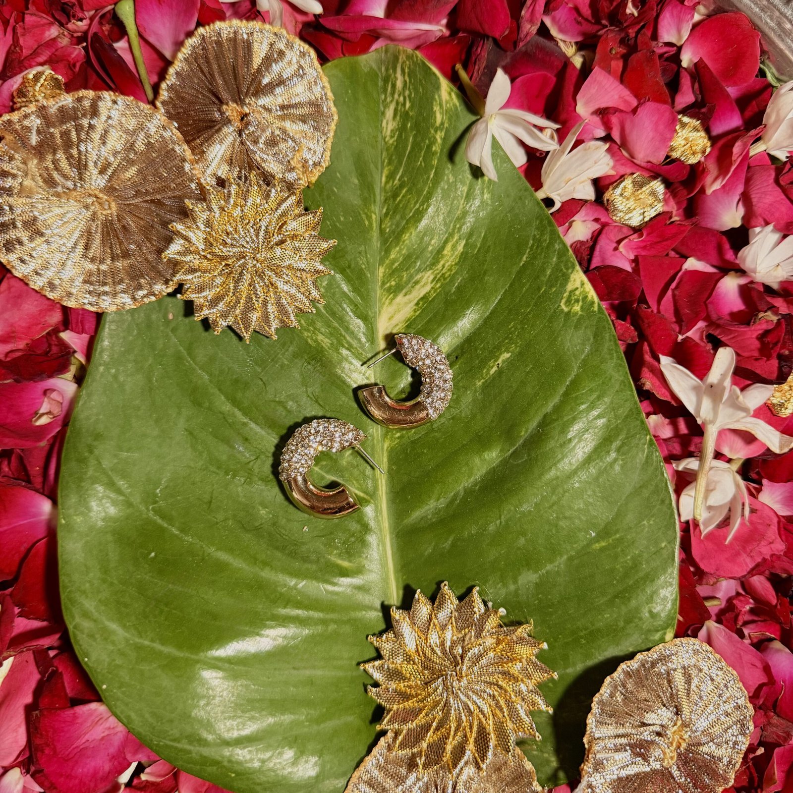 Meet Dhoop, a golden reflection of Eid morning light. These radiant earrings are adorned with delicately set crystals that catch and scatter light like sunshine, creating the perfect festive sparkle. Bold yet graceful, they are made to stand out at chand raat celebrations and glow through every Eid gathering. Finished in 18k gold plating on stainless steel, Dhoop combines warmth, durability, and statement luxury in one luminous design.